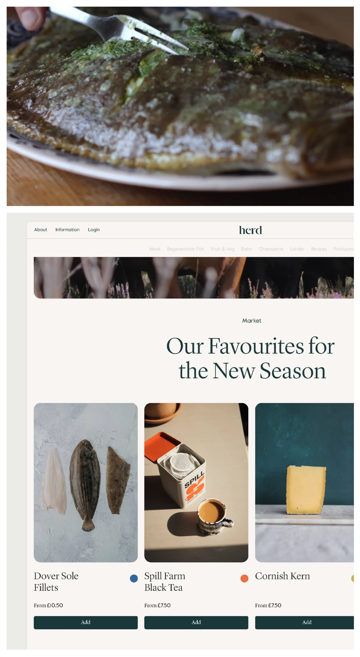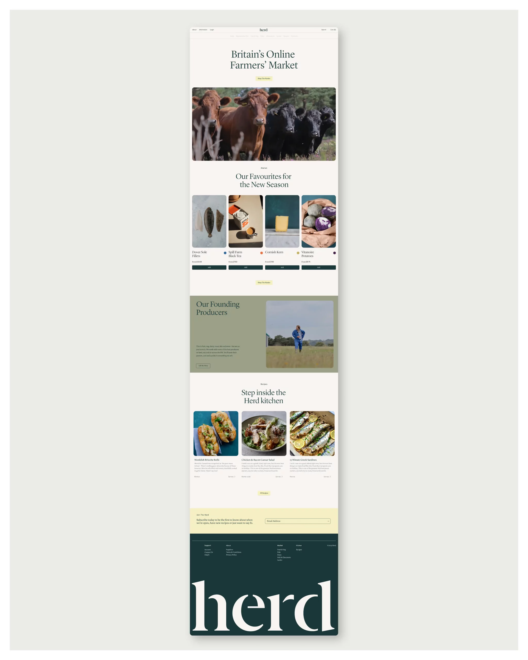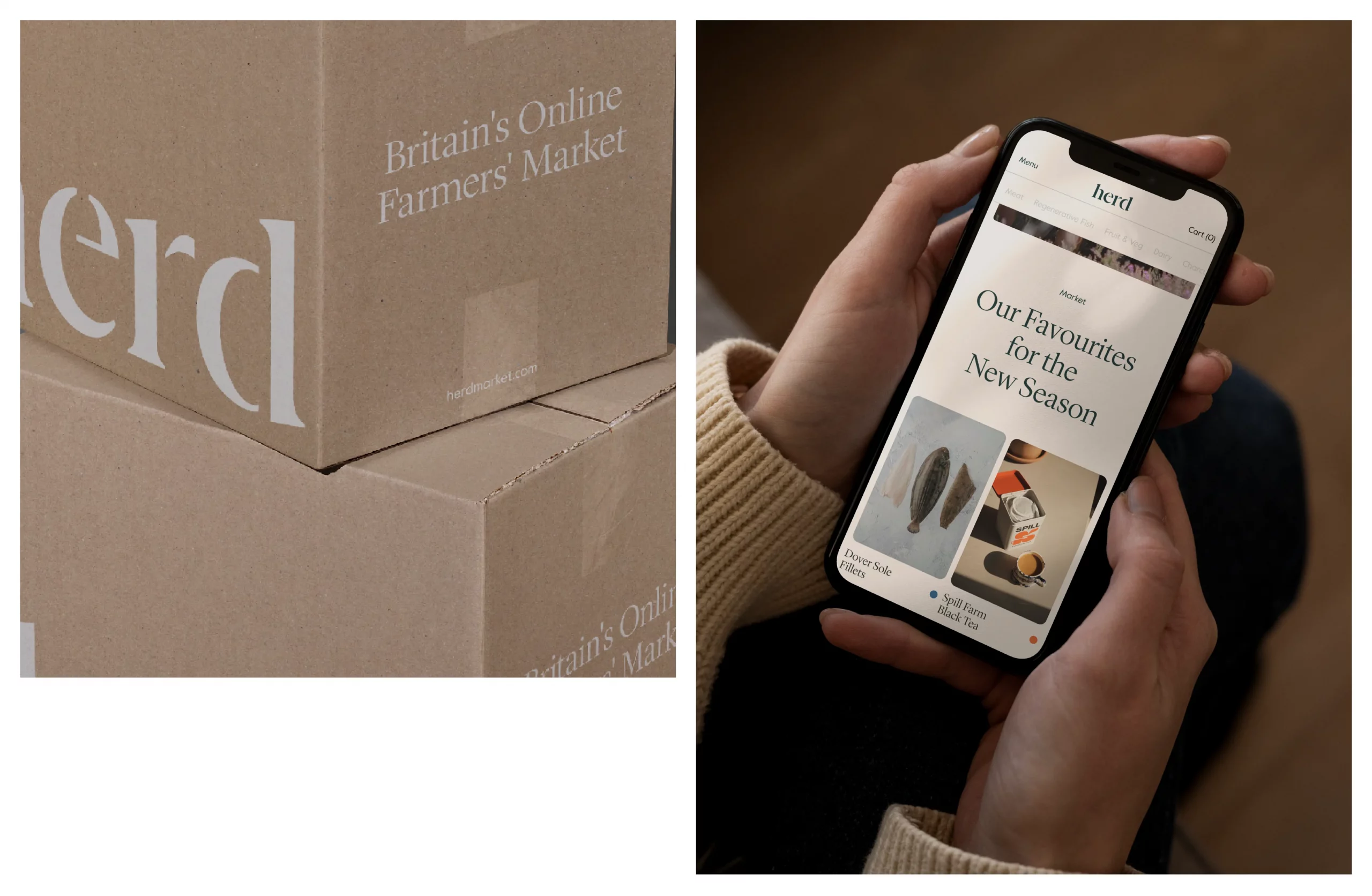 Herd has set out to become the UK’s leading online farmers’ market, offering a curated selection of sustainable, regenerative, and high-quality produce from the best producers in each category. The challenge was to establish a brand identity that conveyed the integrity of its supply chain, the convenience of its service, and the exceptional quality of its offering—aiming to become the most trusted source of produce in the UK. Herd sought to address the inefficiencies of fragmented deliveries by creating a one-stop-shop experience, complemented by seasonal recipes and transparent connections to producers.