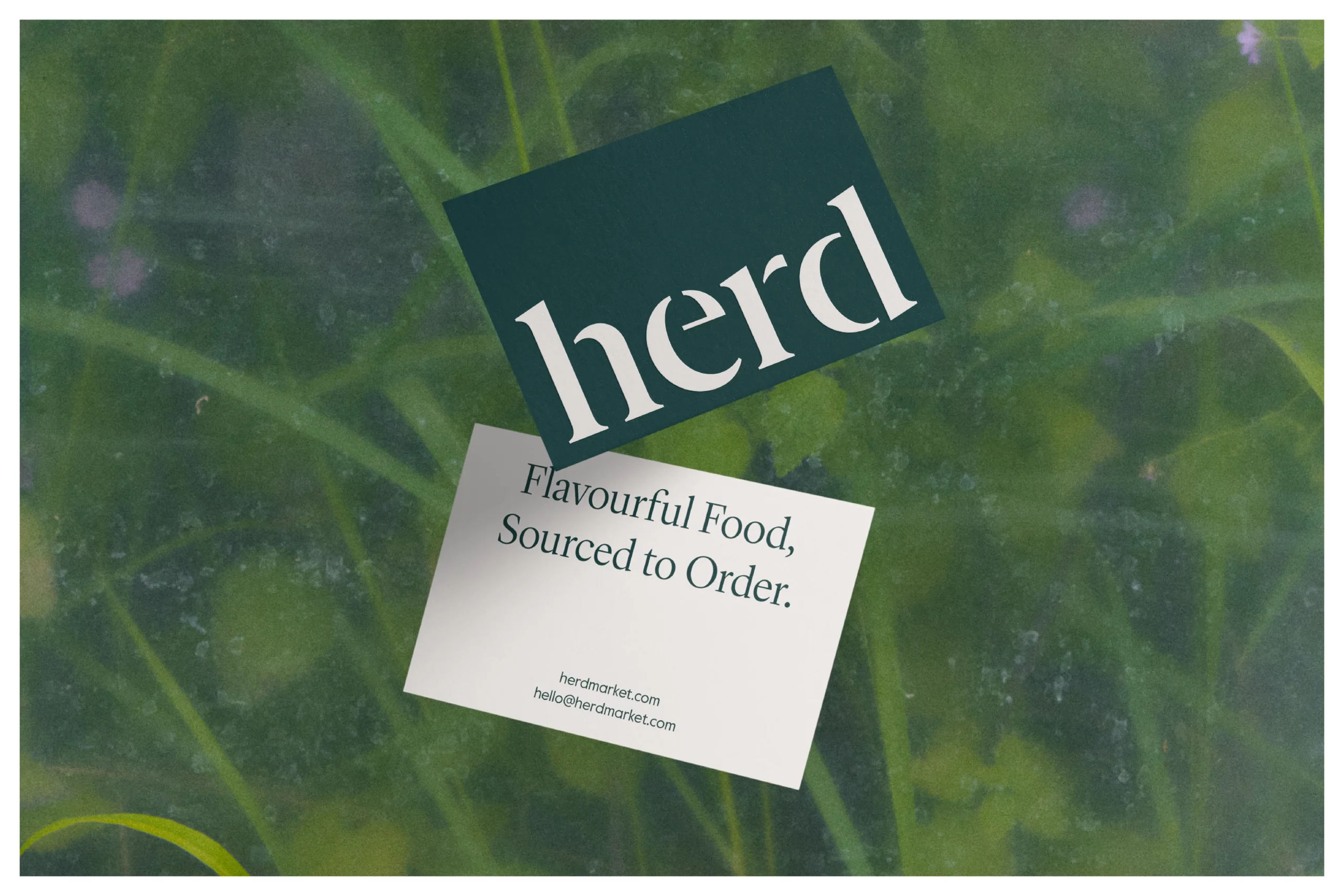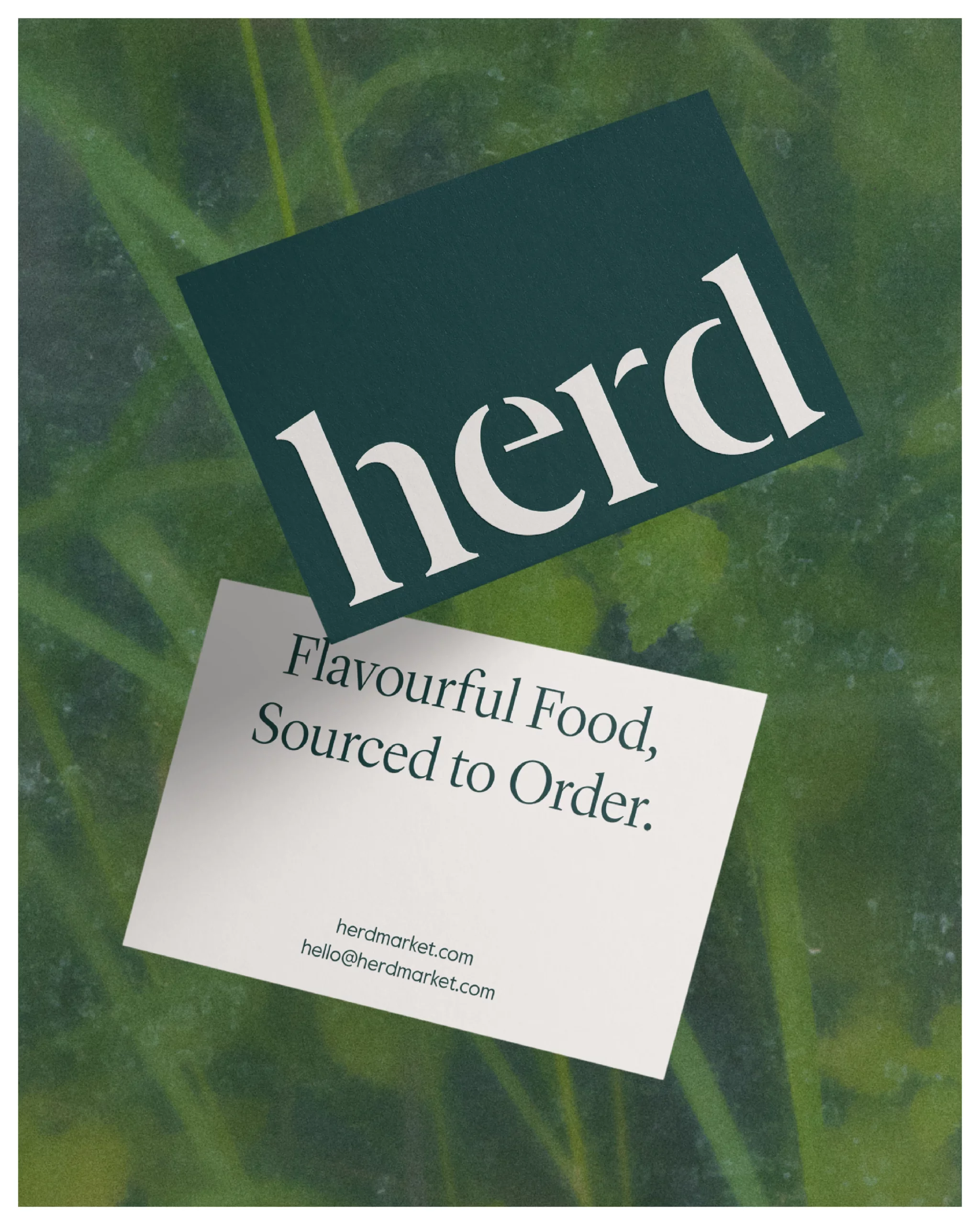We collaborated with the client to create the name “Herd,” symbolising unity, community, and connection to the land and its produce. The logo, inspired by old vegetable crate stencils, celebrates the heritage of traditional markets while embracing a clean, contemporary aesthetic. Earthy tones and elegant typography reflect the brand’s commitment to quality whilst keeping a grounded feeling.