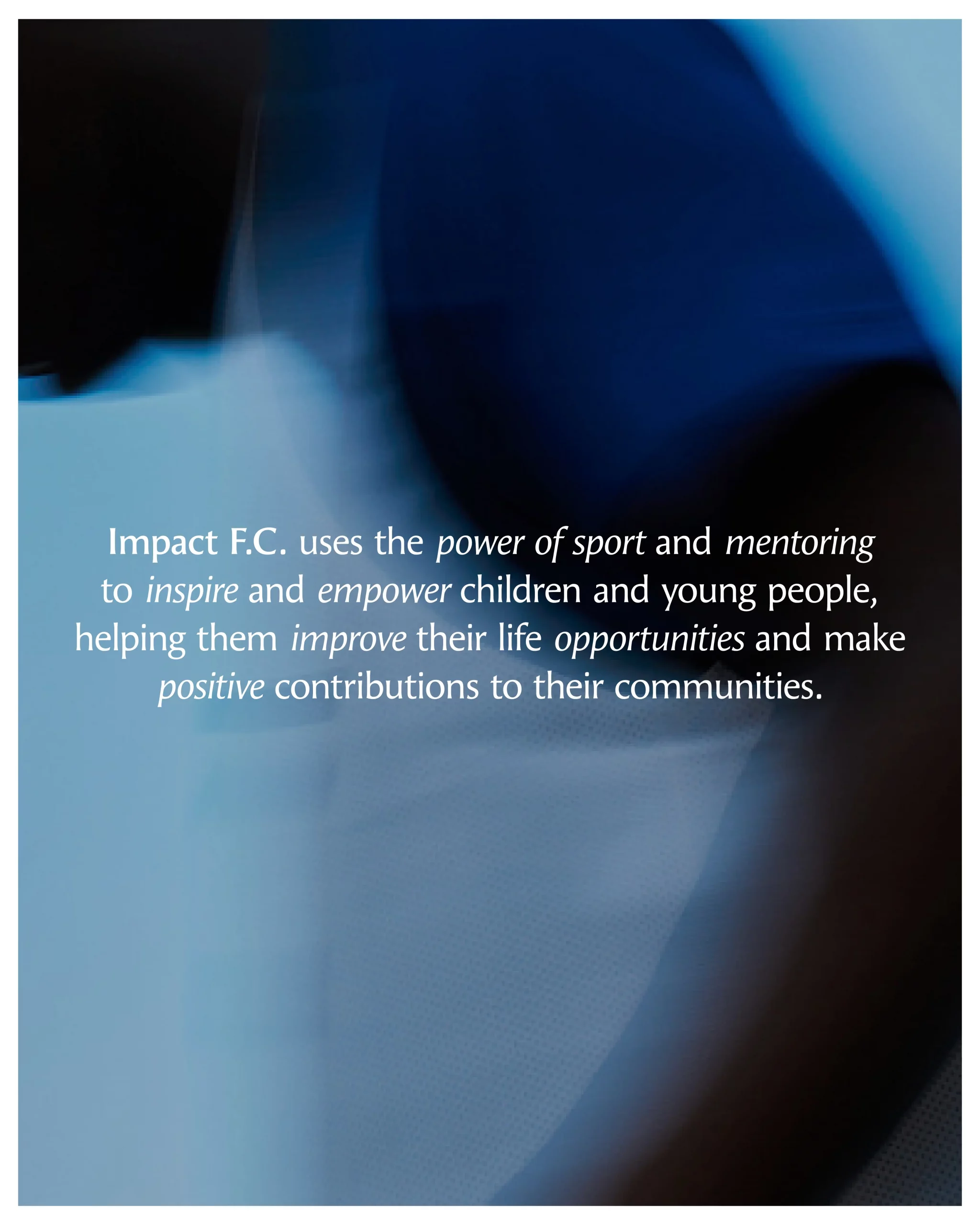 Impact F.C. is more than a football club. Originally founded in Hackney by former Arsenal and Chelsea football academy professionals Alfred Mugabo and Jonathan Muleba, they bring together an academy, school sports coaching, camps and after-school clubs, each underpinned by a strong commitment to community.